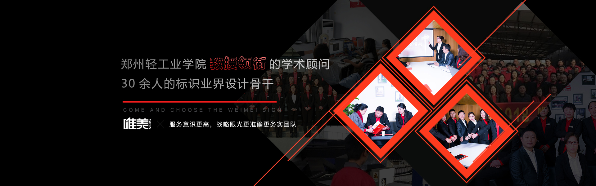 郑州唯美标识设计制作公司拥有21000平方现代化生产车间、多台先进设备、100多名技工团队、12位资深设计师团队,严遵19道制作工序和6S管理体系,成功服务2800多个标识项目,3...